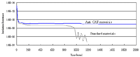 The CAF resistance materials can withstand CAF testing for 2000 hours at 85℃∕85%RH∕50V DC.